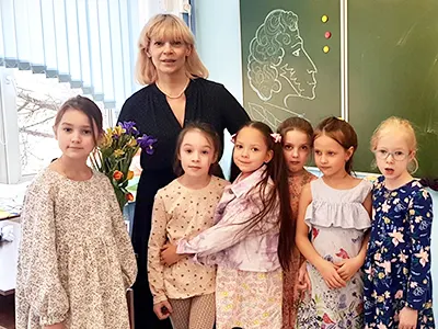 «Я родилась в Ленинграде, окончила Государственный Педагогический Университет им. А. И. Герцена, факультет „Педагогика и методика начального обучения“. Я очень люблю свою работу, ведь учитель начальных классов — профессия особенная. Это большая любовь и большая ответственность. Школа, дети — это вечная молодость и постоянное движение вперёд.
