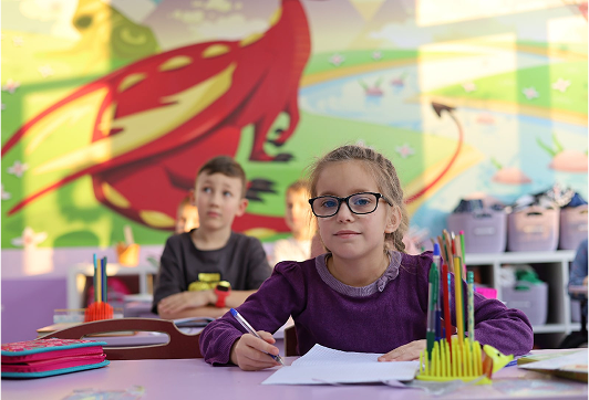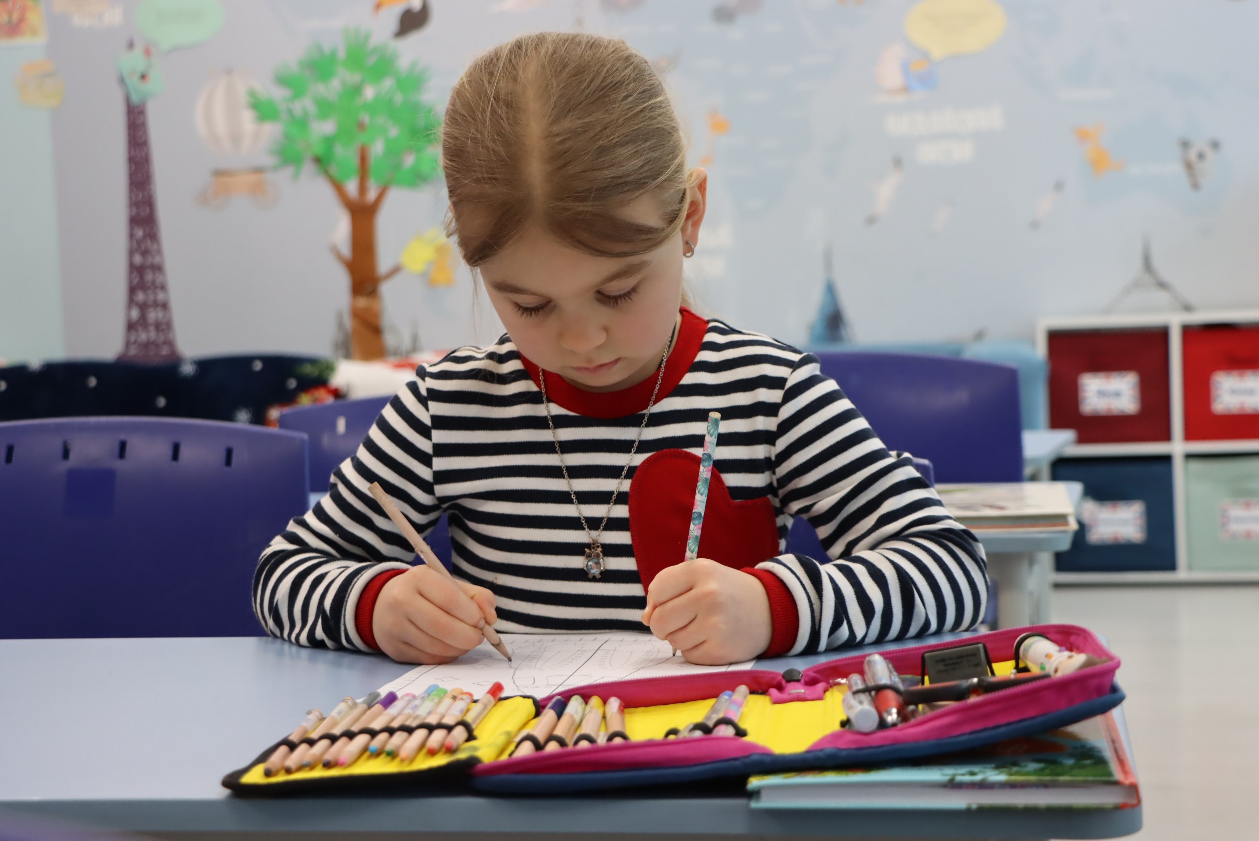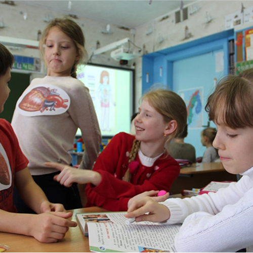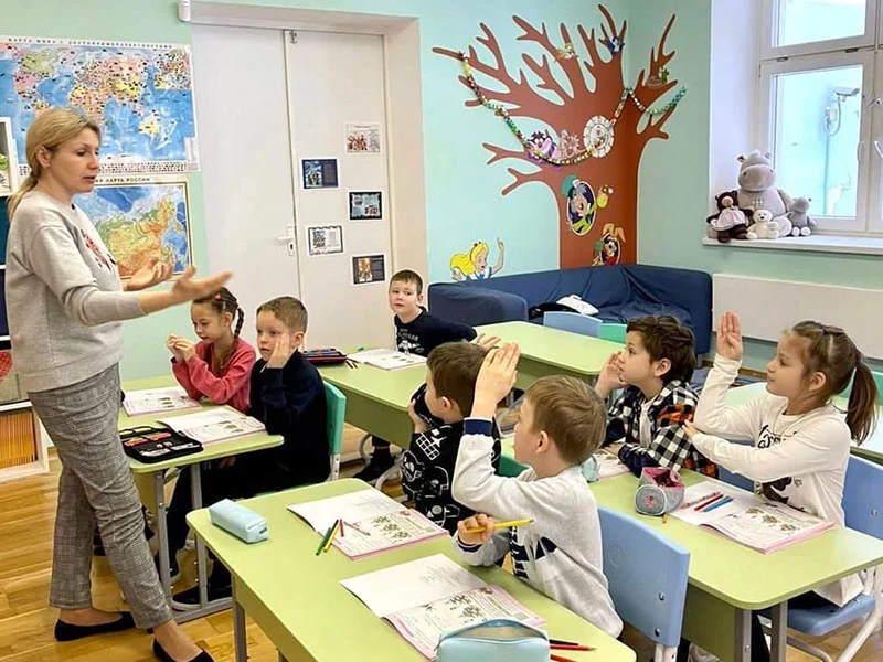 ресурсная база помогают реализовывать принцип погружения начиная с самых первых уроков. Часто на английском проходят даже уроки математики и окружающего мира, а на переменках «англичане» общаются с ребятами на языке: маленькая реплика, комплимент, шутка — все работает на формирования навыков устной иноязычной речи.