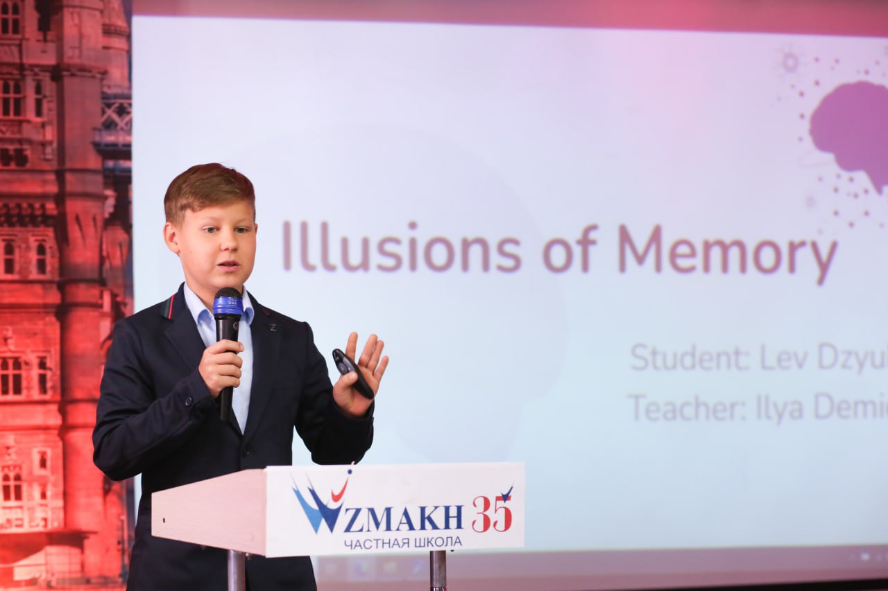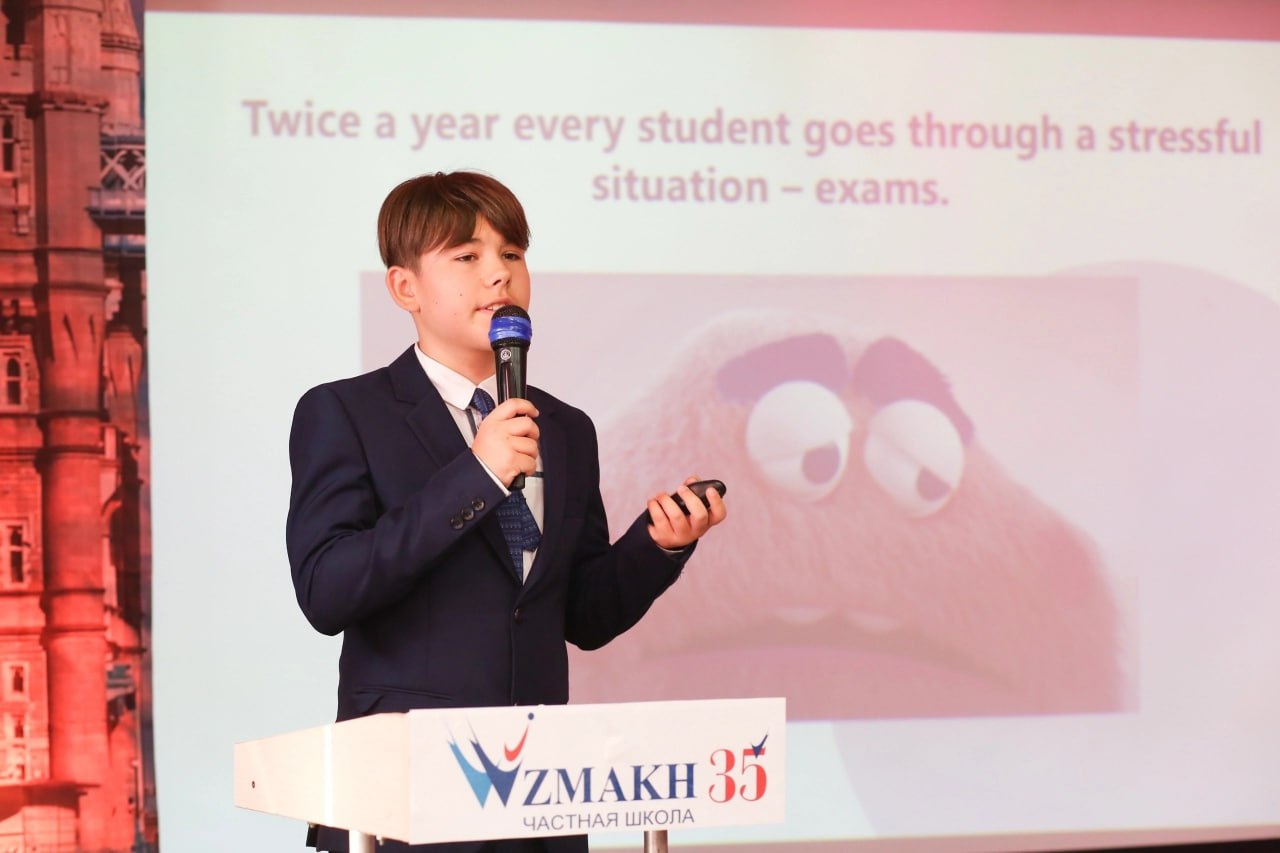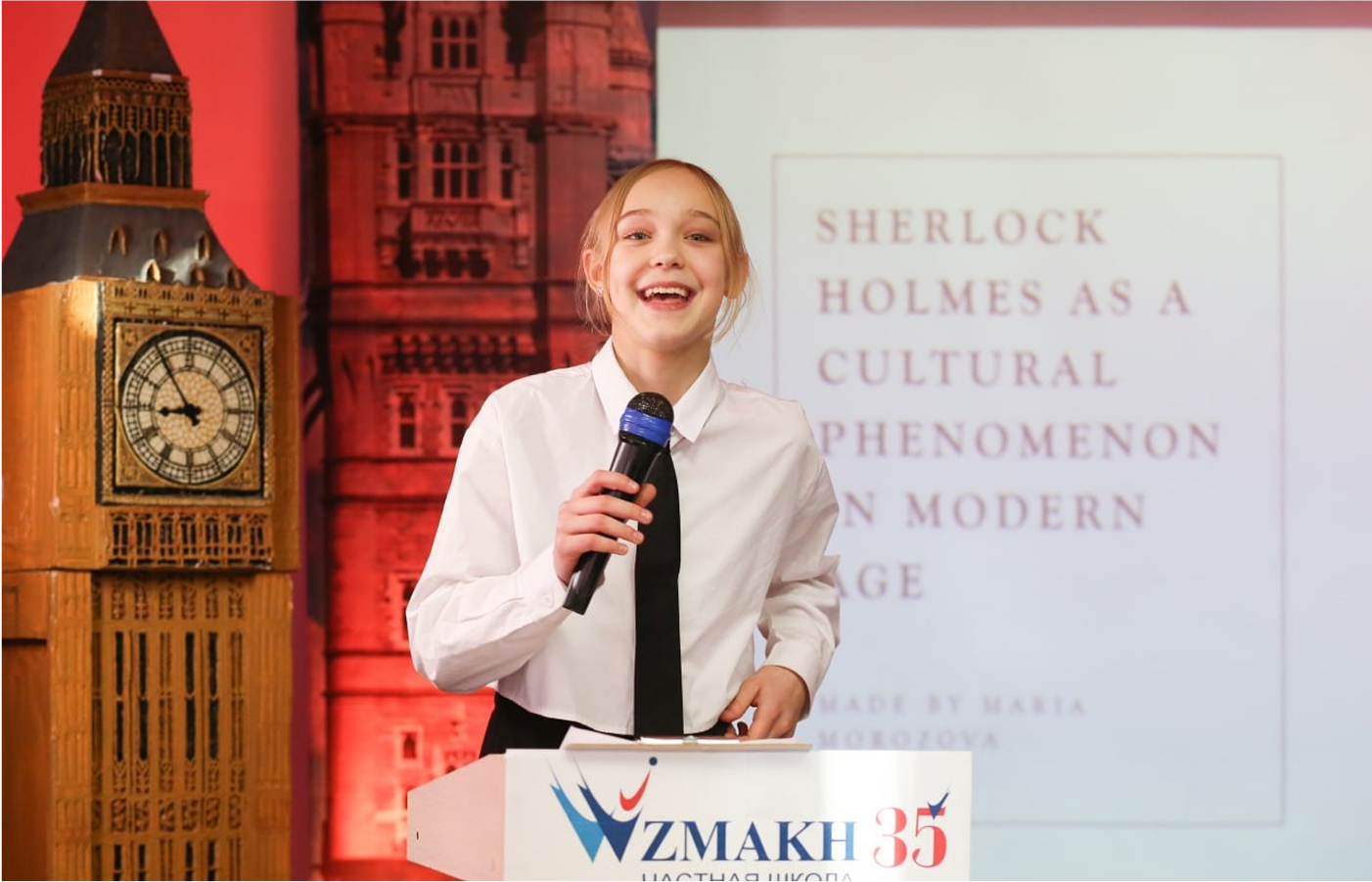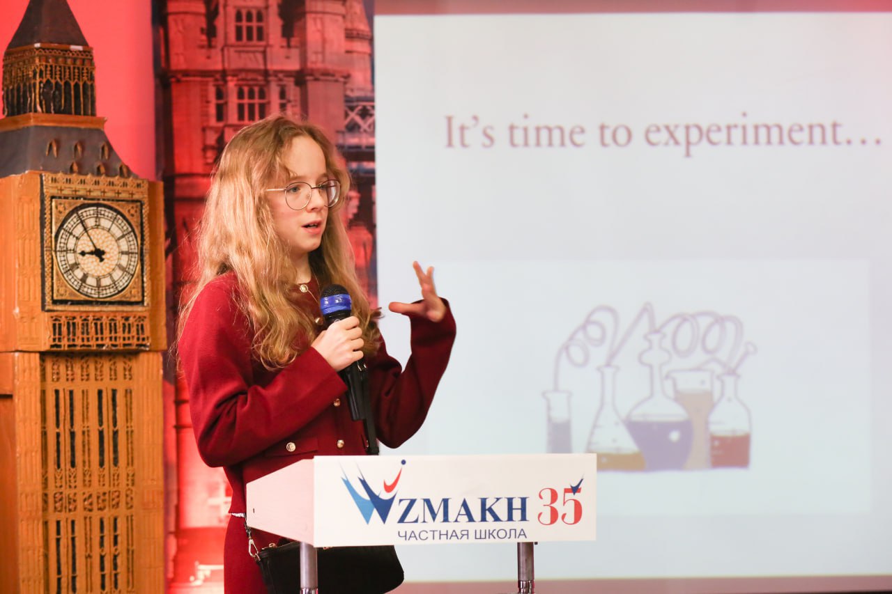 Отметим, что итоговый текст строится именно по принципу научных работ, включает обоснование актуальности выбранной темы, анализ литературы, описание способов исследования и полученных результатов. В дальнейшем проект предполагает создание презентации и защиту - также на английском языке. Сначала работы защищают каждый в своём классе, затем авторы лучших работ соревнуются в рамках своего филиала. И наконец, лучшие из лучших представляют свои работы и презентации по ним на общей конференции всей начальной школы "Взмах".