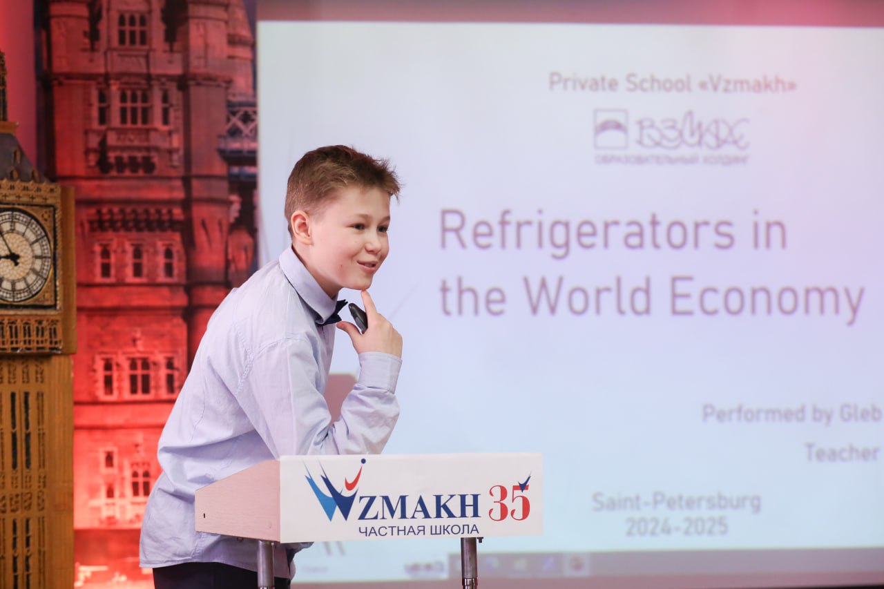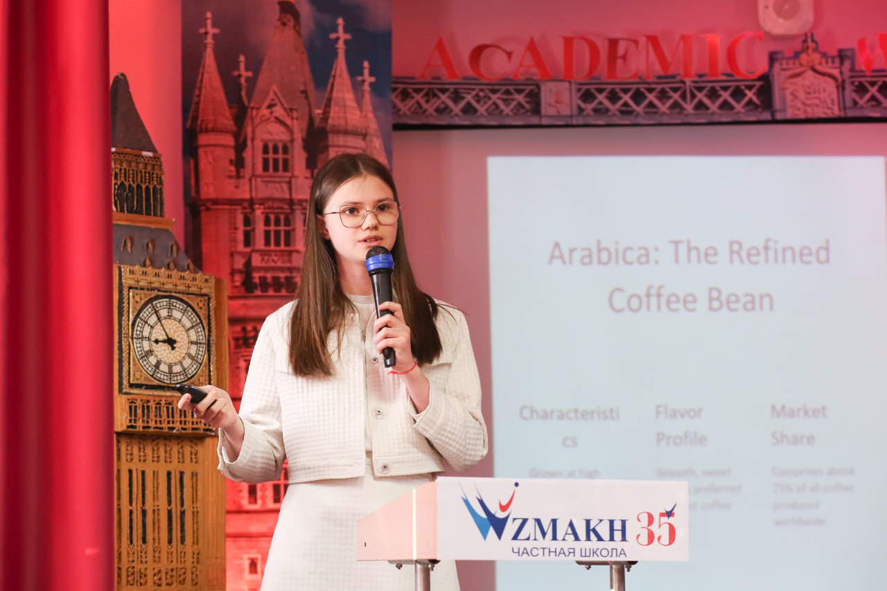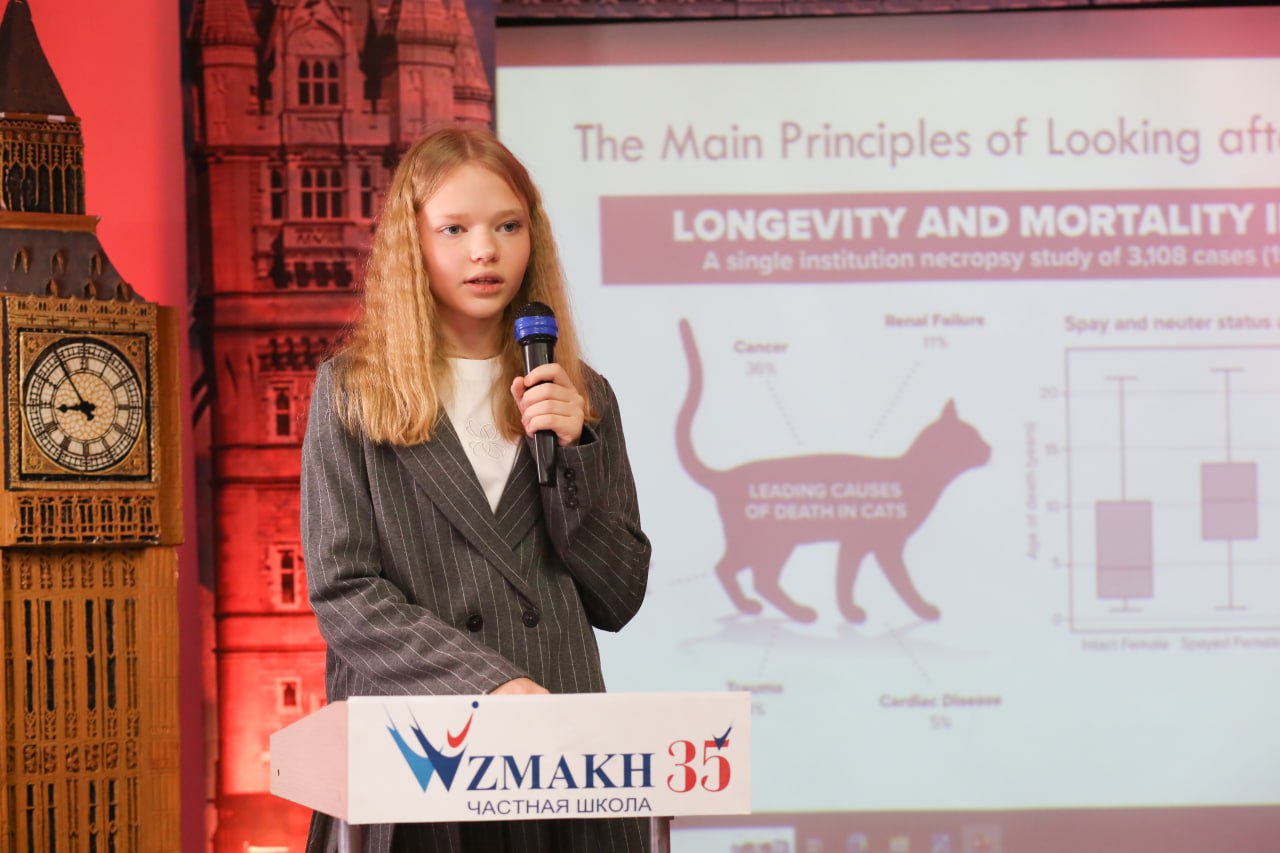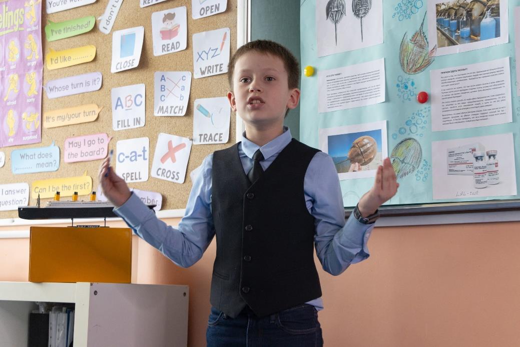 Отметим, что итоговый текст строится именно по принципу научных работ, включает обоснование актуальности выбранной темы, анализ литературы, описание способов исследования и полученных результатов. В дальнейшем проект предполагает создание презентации и защиту - также на английском языке. Сначала работы защищают каждый в своём классе, затем авторы лучших работ соревнуются в рамках своего филиала. И наконец, лучшие из лучших представляют свои работы и презентации по ним на общей конференции всей начальной школы "Взмах".