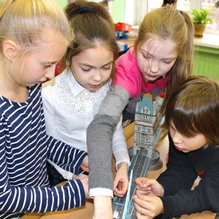 Уже в начальной школе мы начинаем заниматься такими предметами, как шахматы, ТРИЗ, информатика, робототехника. Включаем в программу мифологию, естествознание, географию и даже астрономию! Нам важно, чтобы ребенок в школе мог получить ответ на любой свой вопрос, чтобы наши уроки заставляли его задуматься, внимательнее посмотреть вокруг, захотеть прочесть еще одну книгу, еще и еще, много-много книг обо всем на свете!